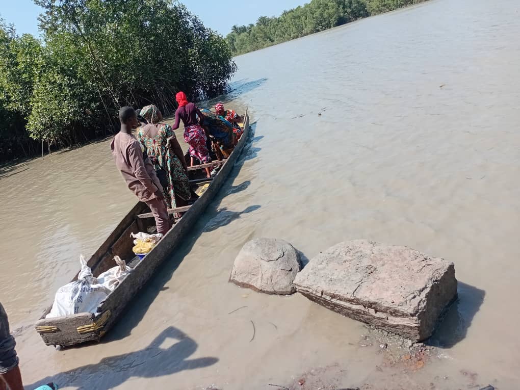 En l’absence d’un pont métallique, les usagers sont contraints de traverser une vaste étendue d’eau salée à bord de petites pirogues inconfortables et non sécurisées. Une situation qui plonge les passagers dans une peur permanente à chaque traversée.