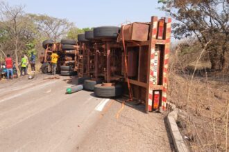 Cissela : Un camion chargé de bouteilles de gaz se renverse et paralyse totalement la circulation sur l’axe Kouroussa.