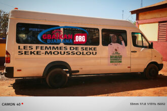 Siguiri/ Sèkè Doko : Cellou Camara, Directeur de Campagne du GMD, offre un minibus climatisé aux femmes de Sèkè au Nom du Président Doumbouya.