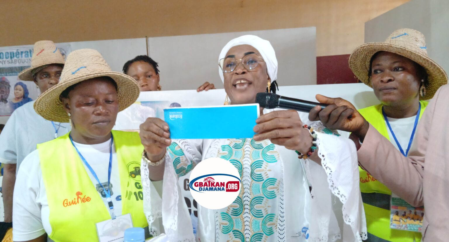 À la tribune devant les autorités, la présidente de la coopérative Nany Sabougnouma a présenté un chèque bancaire, s’engageant à payer la caution de la candidature du général Doumbouya si toutefois, il arrive à écouter le cri de cœur des femmes en se portant candidat.